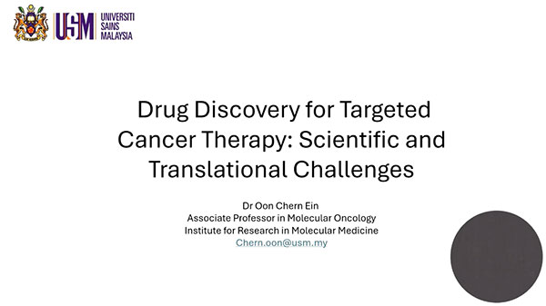 In the keynote speech session, Professor Oon Chern Ein from the Universiti Sains Malaysia, Malaysia, delivered a keynote speech entitled Drug Discovery for Targeted Cancer Therapy: Scientific and Translational Challenges.