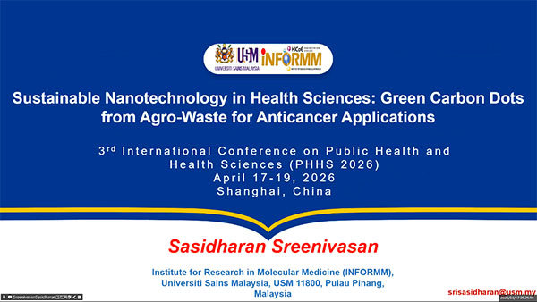 Professor Sasidharan Sreenivasan from the Universiti Sains Malaysia, Malaysia, delivered a keynote speech entitled Sustainable Nanotechnology in Health Sciences: Green Carbon Dots from Agro-Waste for Anticancer Applications.